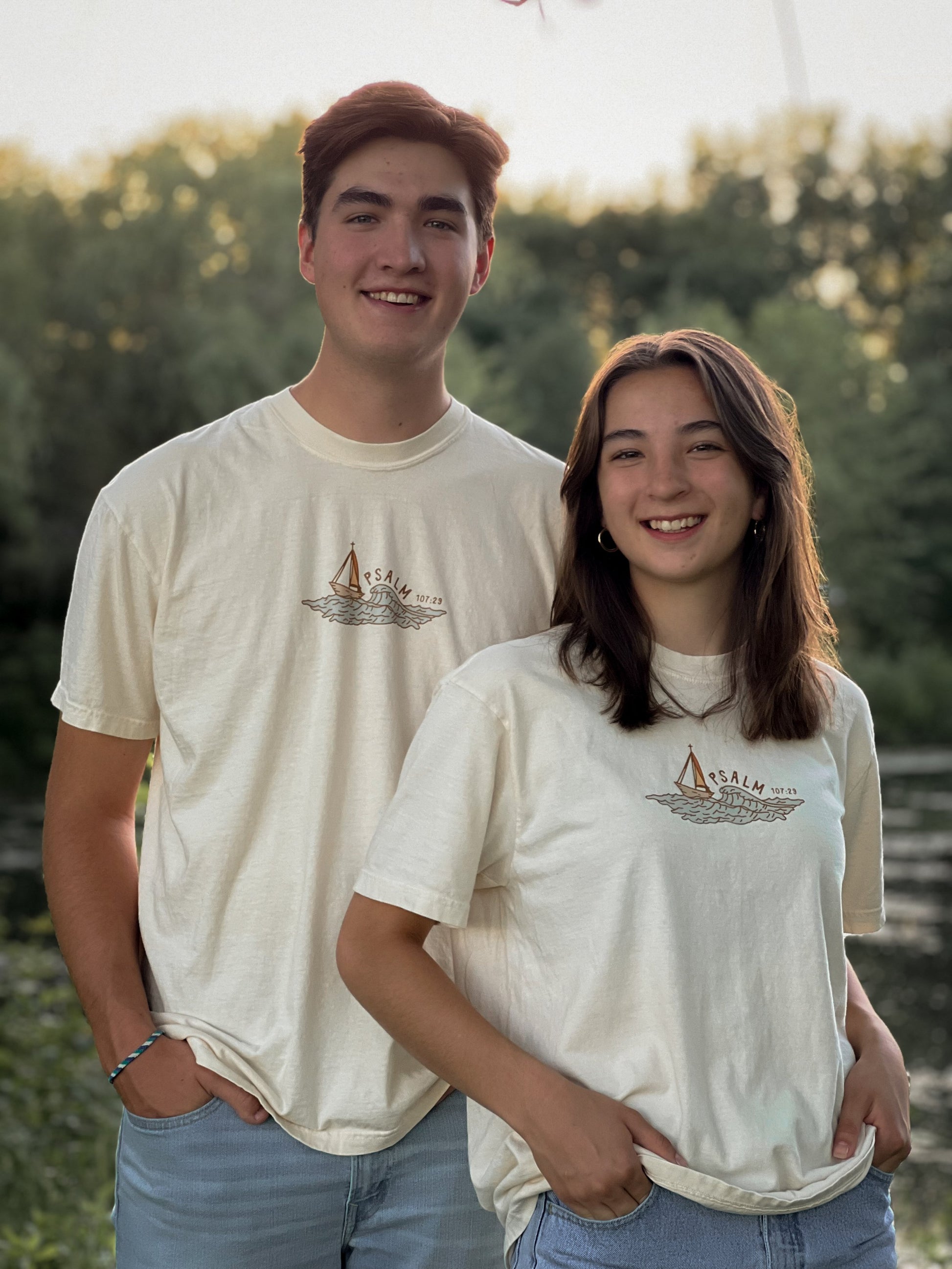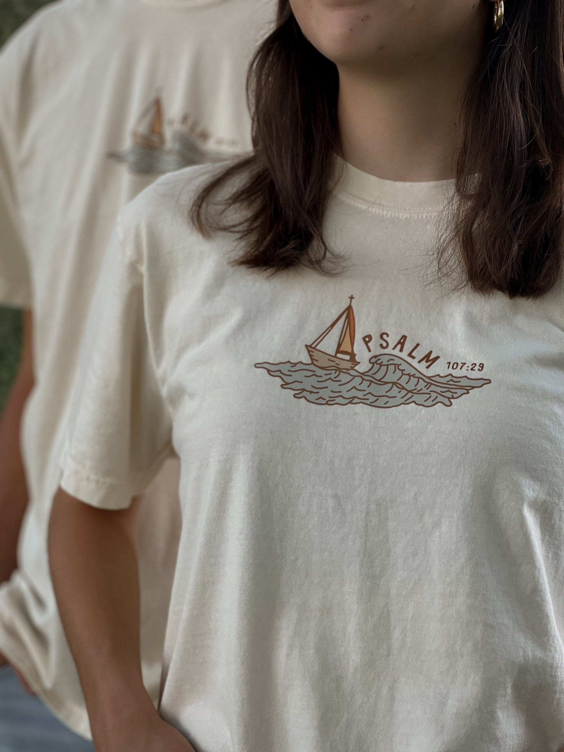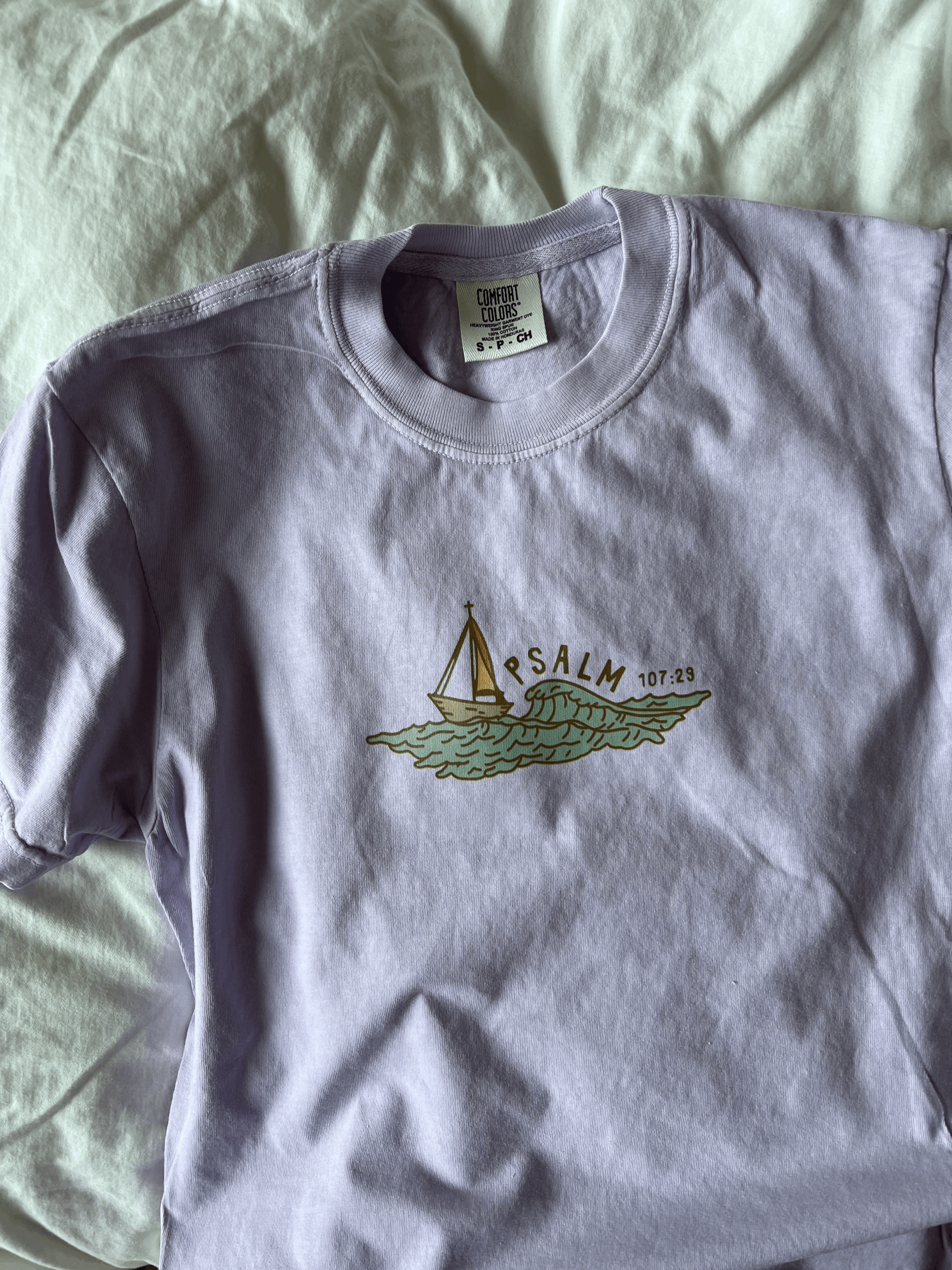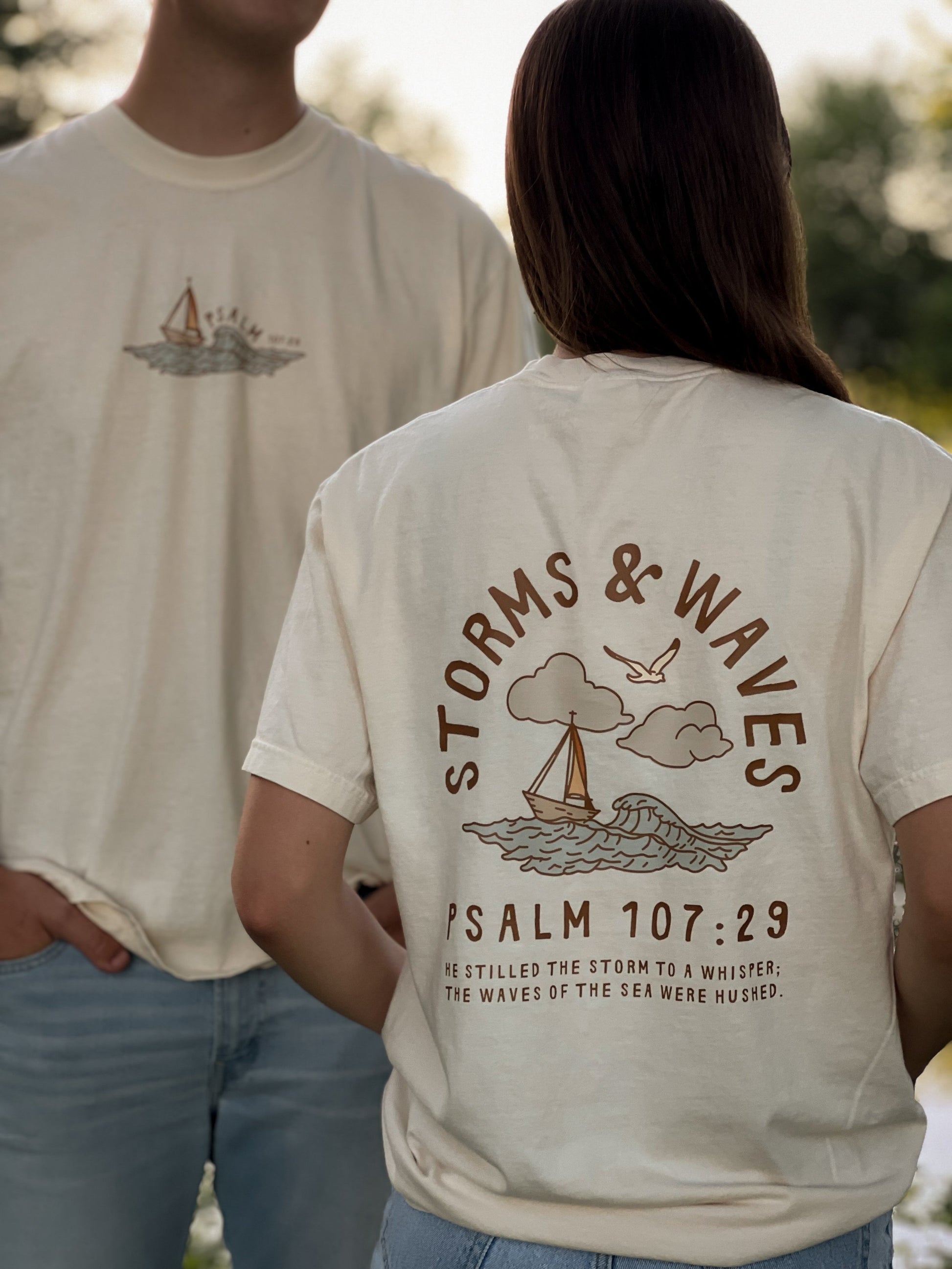 Wearing the "Calm Seas Tee" boldly proclaims your trust in God's unyielding support and His power to still life's storms. It’s a symbol of hope, providing comfort to both you and those around you. Let this shirt be a reminder of reassurance and an invitation for others to seek the calming presence of the Lord in their own lives.