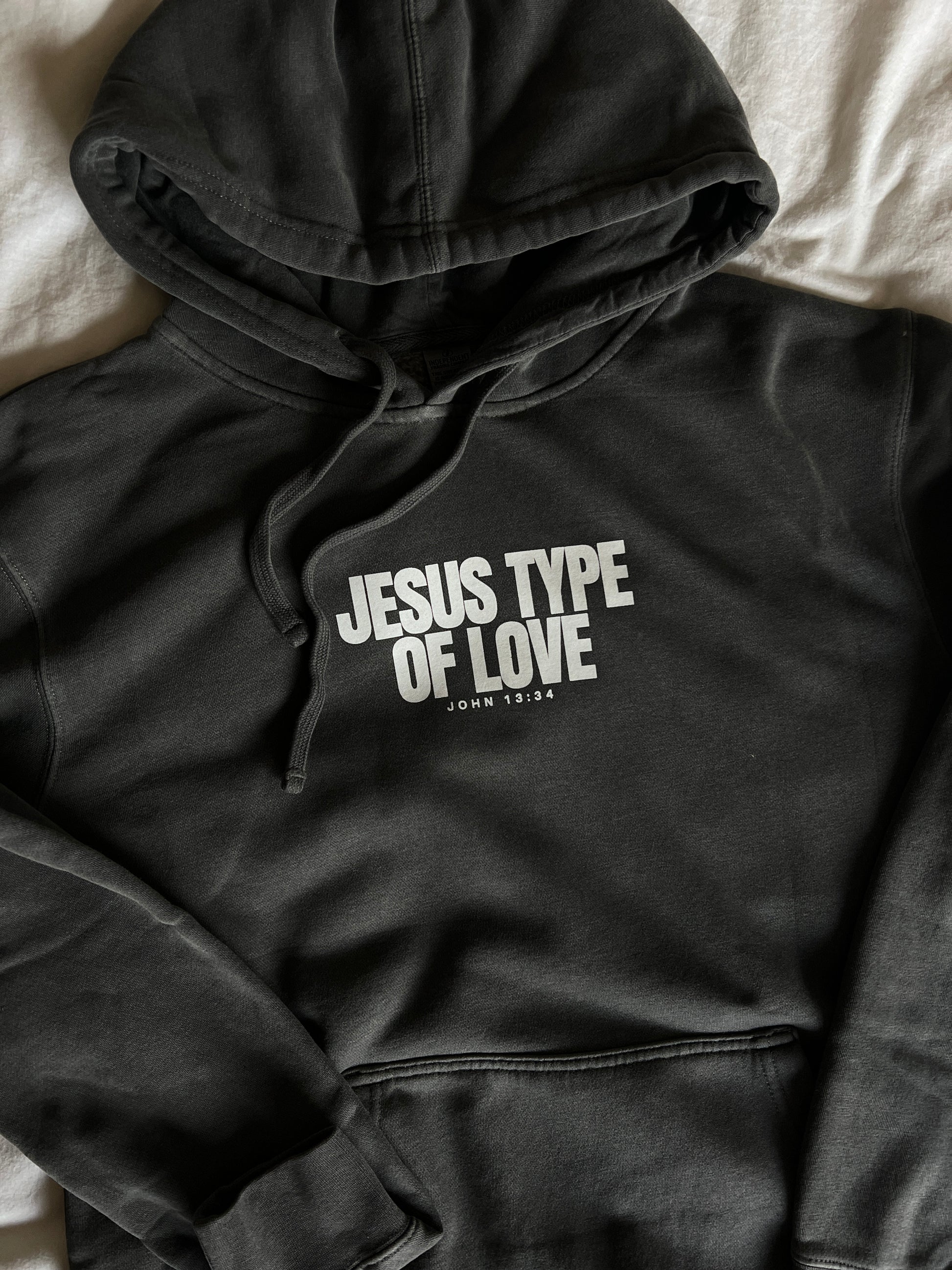 Let this be more than a hoodie; let it ignite conversations and inspire change in our communities. Wear it proudly as a symbol of your dedication to love others with a "Jesus Type of love" – a love that knows no boundaries, prejudices, or conditions. May this hoodie serve as a catalyst for transformation, paving the way for a world where love reigns above it all, guided by the transformative power of Christ's love. By wearing this hoodie, you become an ambassador of love, walking in the footsteps of Jesus and carrying His message of hope, reconciliation, and restoration to a world in desperate need of genuine and sacrificial love.