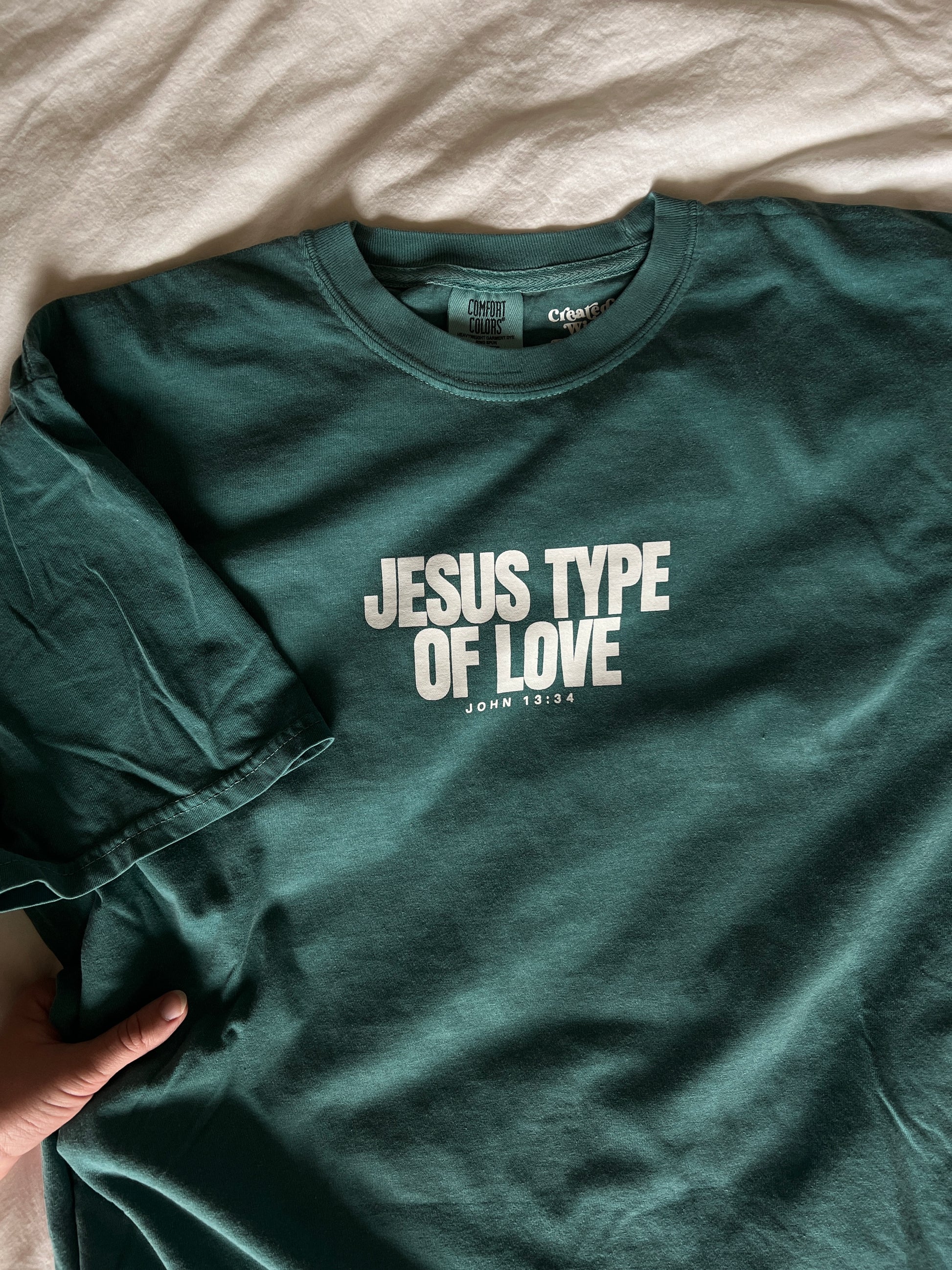 Let this be more than a tee; let it ignite conversations and inspire change in our communities. Wear it proudly as a symbol of your dedication to love others with a "Jesus Type of love" – a love that knows no boundaries, prejudices, or conditions. May this shirt serve as a catalyst for transformation, paving the way for a world where love reigns above it all, guided by the transformative power of Christ's love. By wearing this tee, you become an ambassador of love, walking in the footsteps of Jesus and carrying His message of hope, reconciliation, and restoration to a world in desperate need of genuine and sacrificial love.