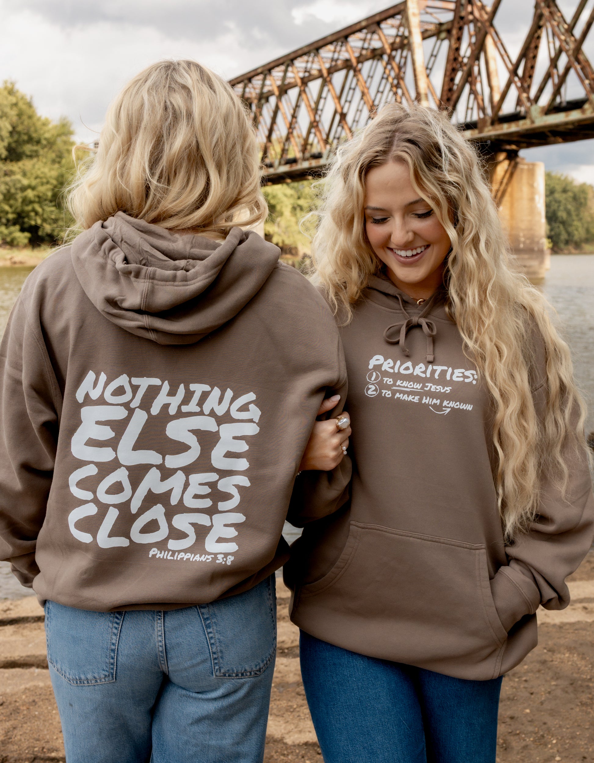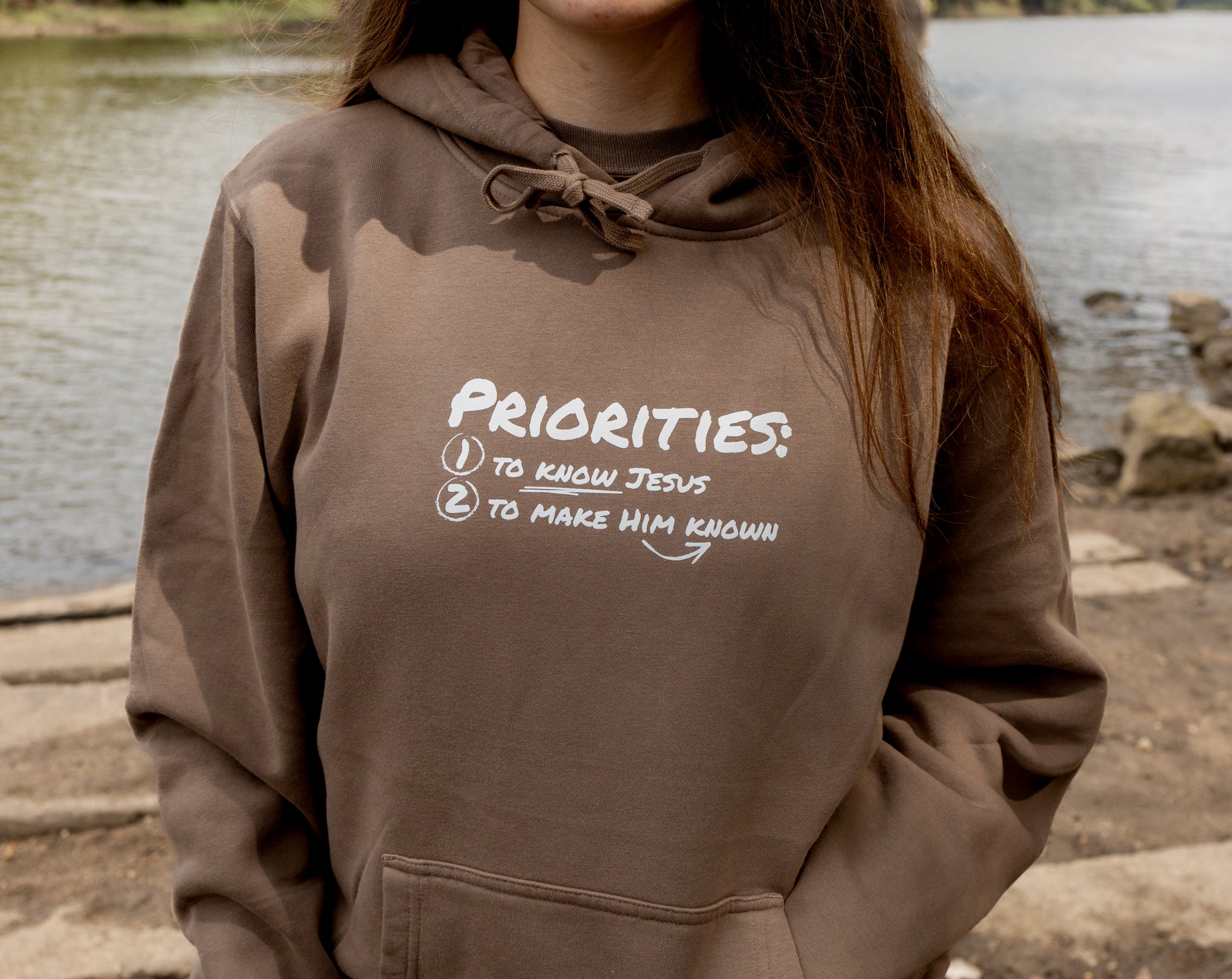 The “Priorities Hoodie” is inspired by Philippians 3:8, where Paul writes, “Indeed, I count everything as loss because of the surpassing worth of knowing Christ Jesus my Lord.” This verse reminds us that nothing in this life compares to the treasure of knowing Christ. Success, possessions, and achievements all fade in light of Him. What truly matters is setting our hearts on what is eternal.