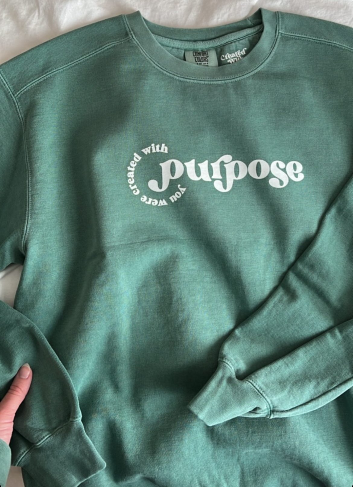 The theme of this crewneck was part of the foundation to our entire apparel line and this phrase was our inspiration to begin this journey. Before we were even born, God declared our destiny; that we would fulfill His plan, He who always accomplishes every purpose and desire in His heart.