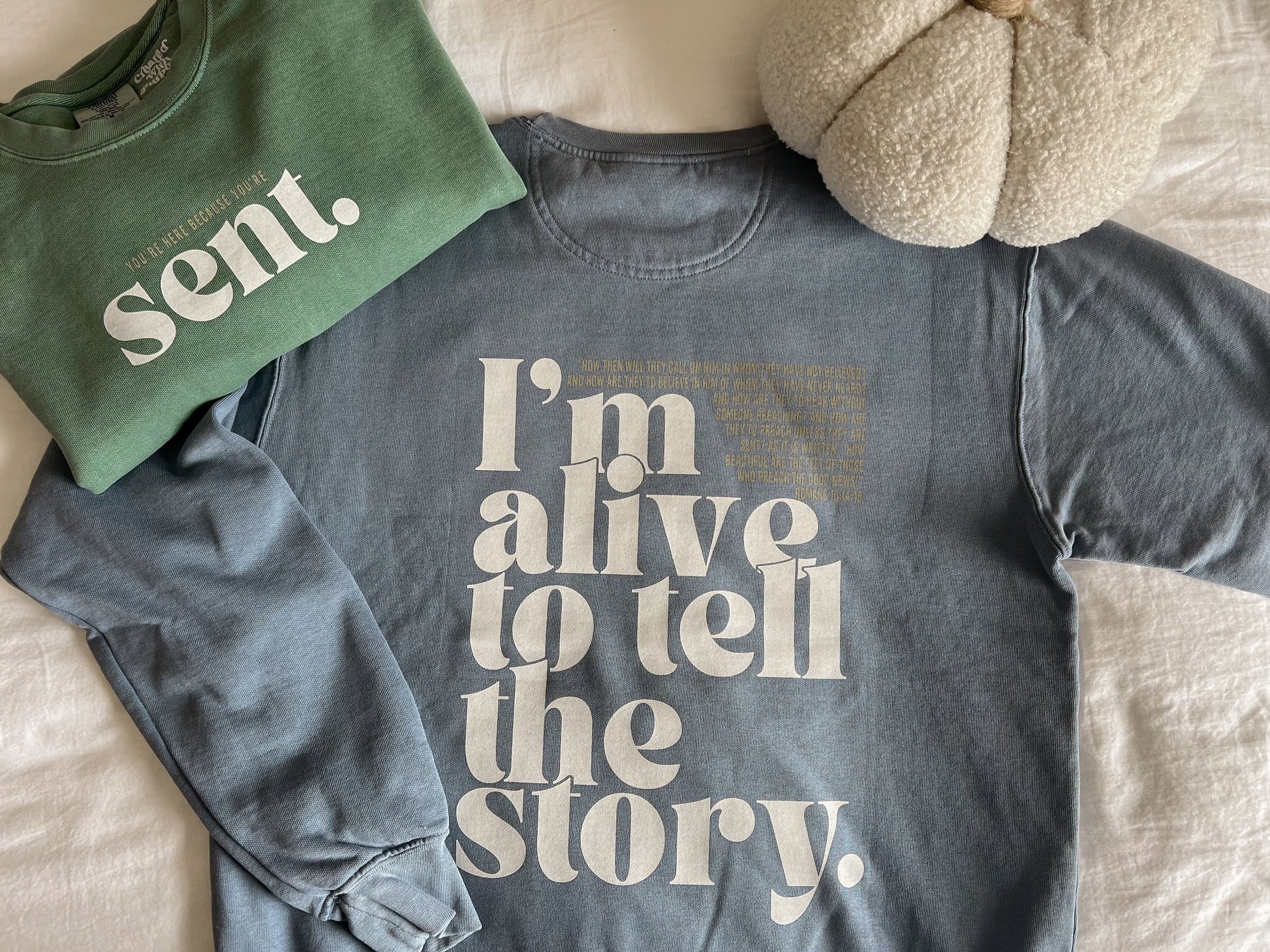 This idea behind the creation of this crewneck was to make something that was eye-catching, thought-provoking, and action-taking. Something that would encourage both believers and nonbelievers to go out and do the work of the Lord. After a study in the book of Romans, I kept coming back to Romans 10:14-15. How will they know unless they are told? How will the nations hear the good news of the Lord unless they are told? Has the Lord not called us to preach the Good news? Let this crewneck serve as a reminder that you were created with purpose and a mission and let it spark conversation and encourage others in their walk with Christ!
